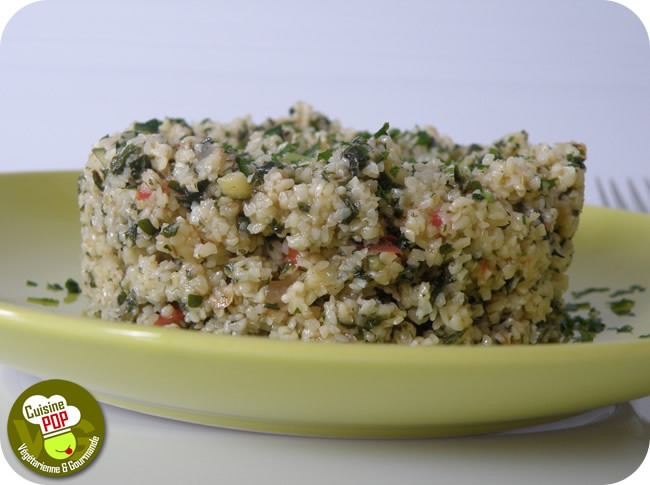 # 350g de boulgour # 3 bottes de persil plat # 2 bottes de menthe # 5 jeunes oignons nouveaux # 2 citrons # 3 tomates # 12 cl d'huile d'olive # 1/2 l d'eau # Sel et Poivre