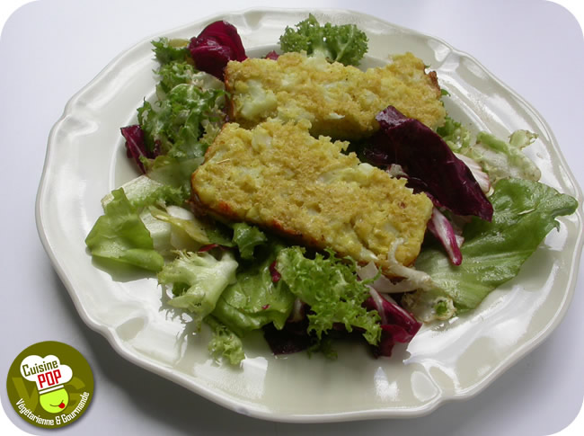 # 1 petit chou# fleur # 100g de flocons de quinoa # 15 cl de lait de riz # 2 œufs # 50g d'emmental râpé sans présure animale # 1 c. à café de poudre de curry # Sel et poivre