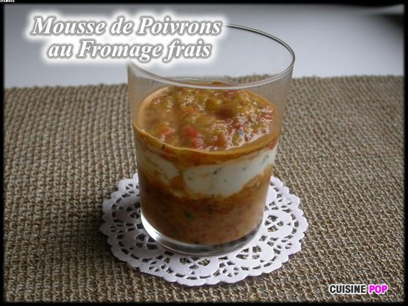 3. Dans 4 verres transparents, versez une couche de purée de poivrons. Couvrez-la de fromage frais puis ajoutez une autres couche de purée de poivrons.