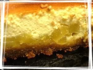 # 300g de pain d'épices # 60g de beurre salé # 500g de fromage blanc # 1cs de maizena # 6 gouttes d'arôme naturel au citron vert # 3 oeufs # 100g de miel de chataignier # 3 pommes # 2c. à s. de cassonnade # 6 gouttes d'arôme tarte tatin