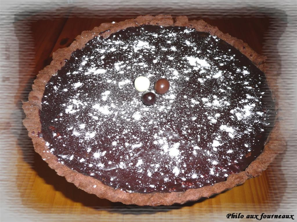 6. Faites chauffer la crème dans une casserole puis ajoutez le chocolat et remuez hors feu. Nappez la tarte et laissez refroidir 15 minutes à l'air libre, puis 30 minutes au réfrigérateur. Décorez avec un peu de sucre glace.