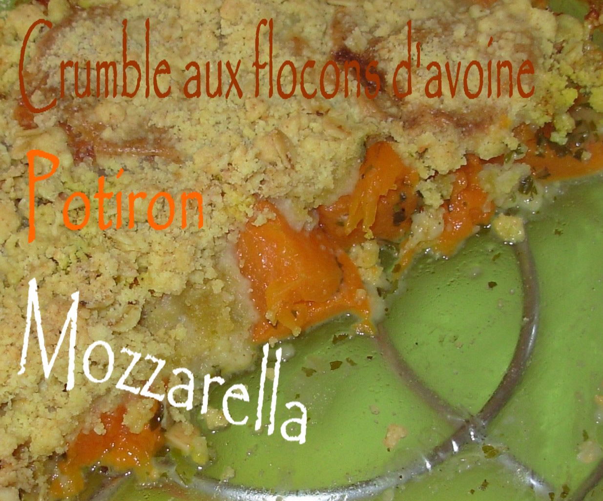 # 500g de potiron # 1 boule de mozzarella # 1 gousse d'ail # 1 c à s de persil haché # 1 c à s de flocons d'avoine # 1 c à s de parmesan râpé # 50g de beurre doux # 50g de farine # 1 c à s d'huile d'olive # Sel, poivre