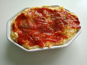 3. Enfin, étaler les deux cuillères à soupe de coulis de tomates.