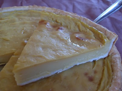 # Moule à tarte de 28 cm de diamètre # 1 pâte brisée ou feuilletée # 50 cl de lait de soja vanille # 50 cl de crème dessert soja à la vanille # 120 g de poudre impérial # 80 g de sucre blond en poudre # 1 sachet de sucre vanillé