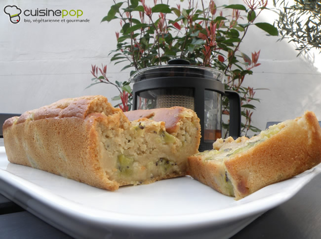 Blog : CuisinePop Le p'tit mot en + : Ce cake fondant pommes-kiwis sera meilleur encore après 2 heures de réfrigération.